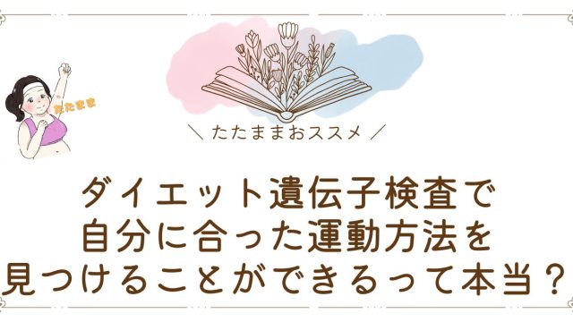 おすすめのダイエット遺伝子検査キット 子育て中でも大丈夫! 自宅で自分に合ったエクササイズができるダイエット遺伝子検査キットをご紹介 \ただいまキャンペーン中/ 6月 11, 2025 たたまま たたままブログ