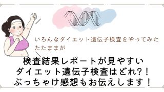 今回は実際にいろんなダイエット遺伝子検査をやってみた私が、検査結果レポートの見やすさやぶっちゃけ感想もお伝えします。